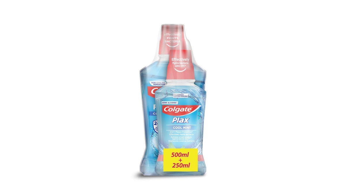 Pachet promo: Apa de gura Colgate Plax Cool Mint fara alcool, 500ML + 250ML