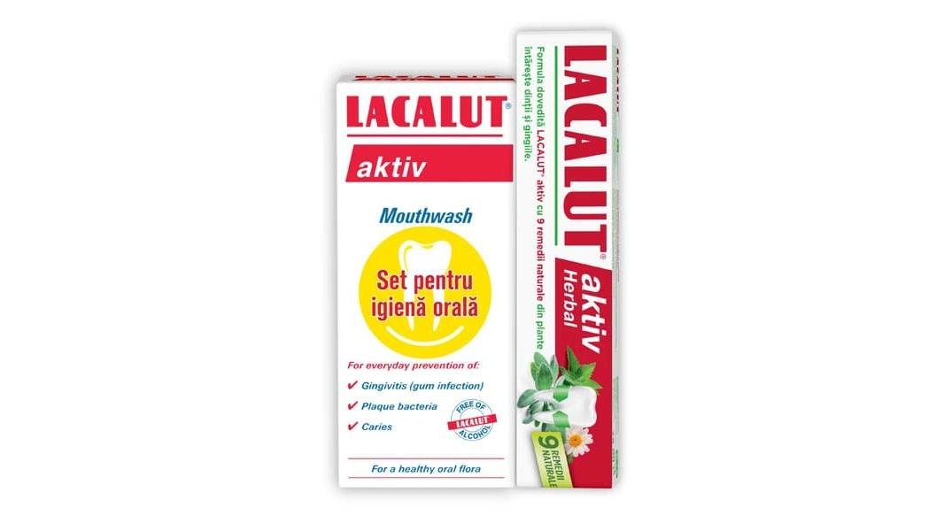 Set Igiena Orala( Lacalut Aktiv Antiplaque 300 ML+ Lacalut Aktiv Herbal 75 ML )