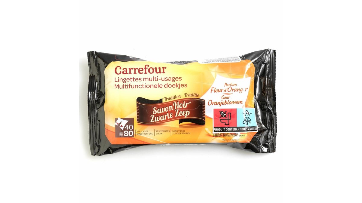 Servetele umede cu utilizare multipla, cu parfum de sapun negru si flori de portocale, Carrefour, 2x40 bucati