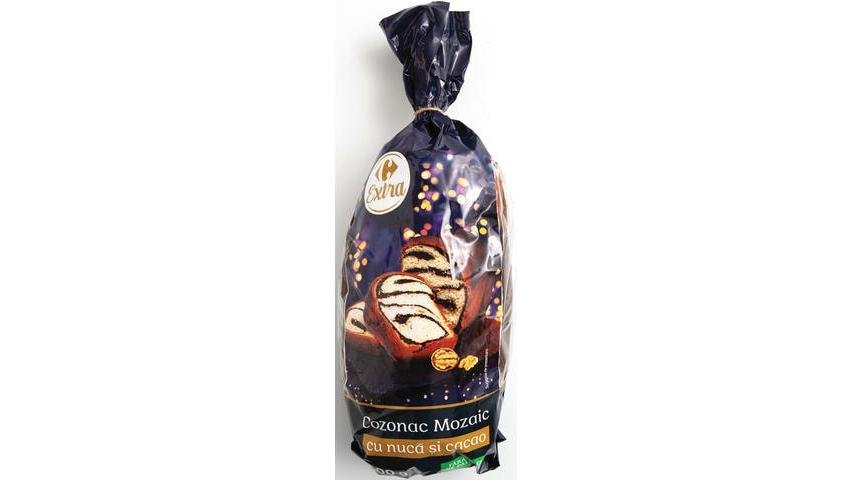 Cozonac Mozaic cu nuca si cacao, Carrefour Extra, 600g