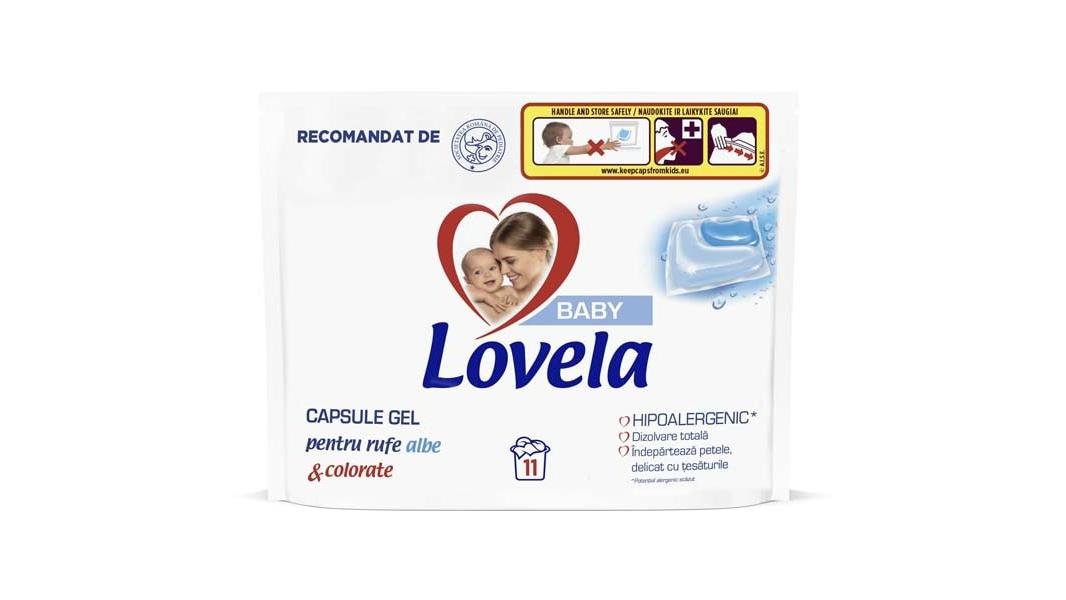 Detergent capsule gel pentru rufe albe si colorate, Lovela, 11 spalari