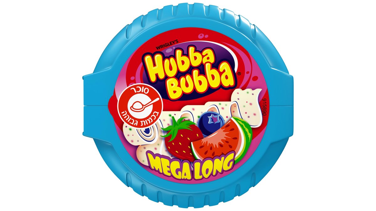 Hubba Bubba Mega Long guma de mestecat cu arome de capsuni, afine si pepene rosu 56 g