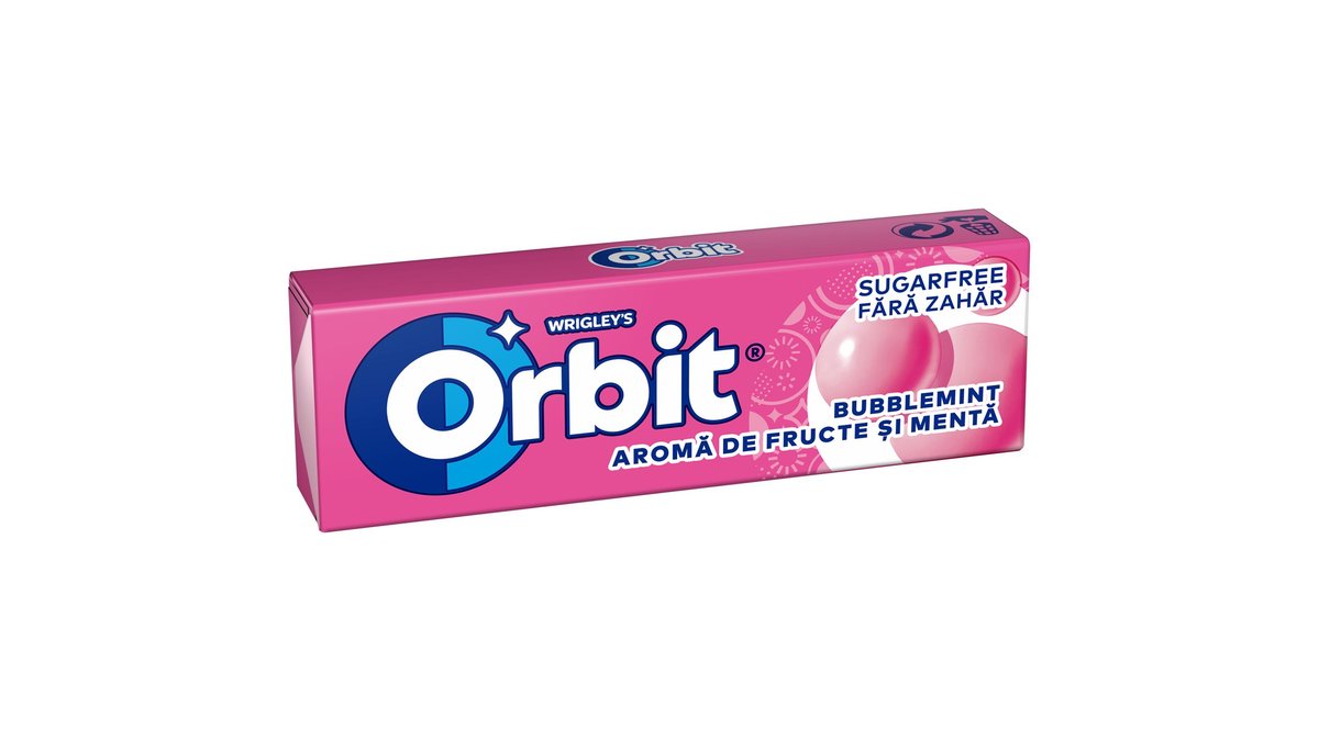 Orbit Bubblemint guma de mestecat cu arome de fructe si menta 10 buc 14 g