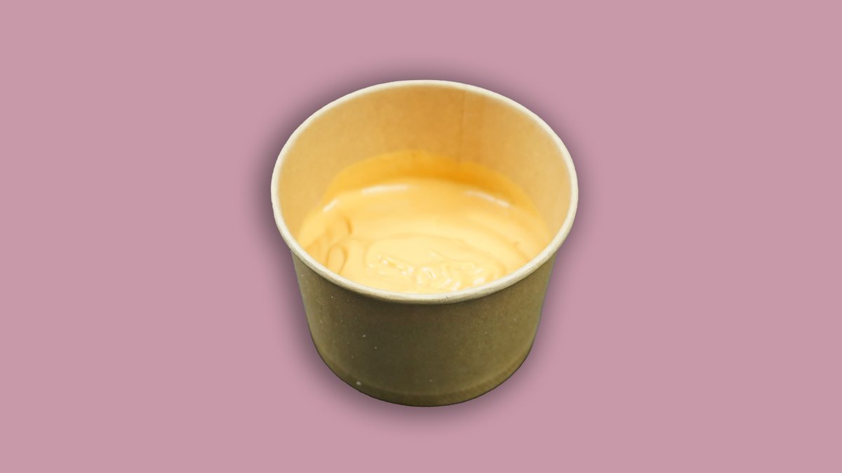 Cartofi proaspeti prajiti + telemea cuburi + o doza de suc la alegere + un sos la alegere (sosul este servit peste cartofi) + frunze de ceapa - 350g