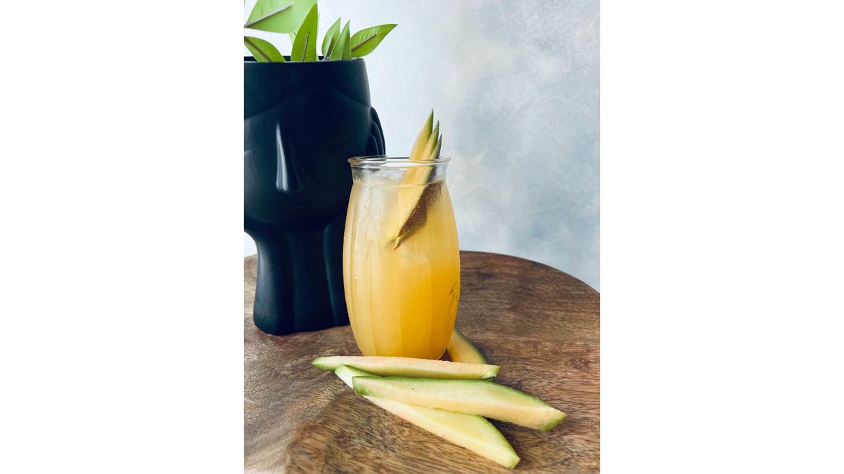 Gin Larios, sirop natural mango, fresh lamaie, apa tonica, gheata.
