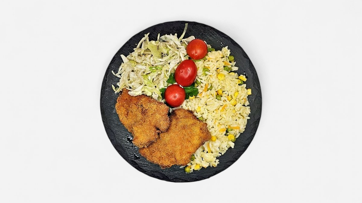 Șnițel de post cu orez și salată de varză