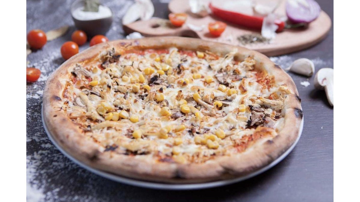 Sos de roșii, mozzarella, piept de pui, porumb, ciuperci