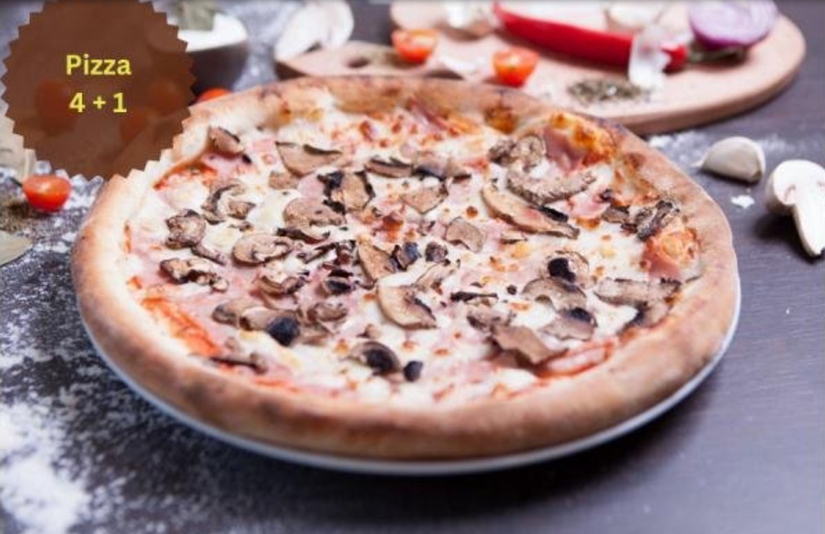 4 pizza medii + 1 pizza medie gratis SAU 1 Pepsi (2 L) gratis *Poză cu titlu de prezentare