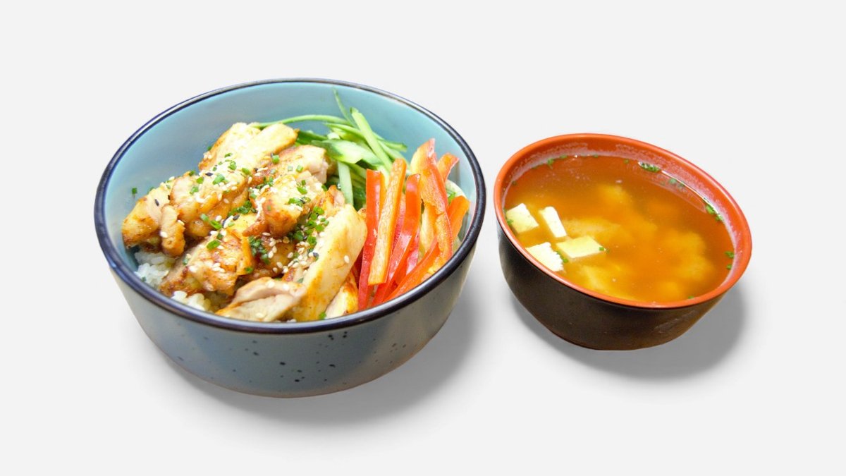 Meniu Supa Miso 300ml + Pui Teriaky cu orez 300g