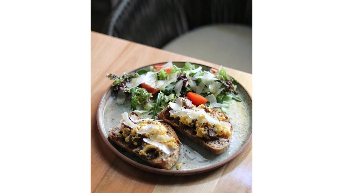 Ouă poșate, cremă de avocado, pâine cu maia și roșii cherry coapte