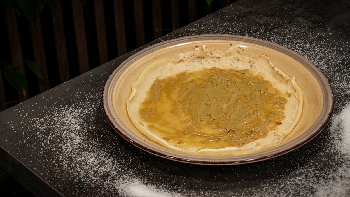 Chiflă trasă la tigaie cu unt, carne de vită cu berbecuț, sos iskender, iaurt, roșii, ardei copți, garnitură la alegere 500 gr