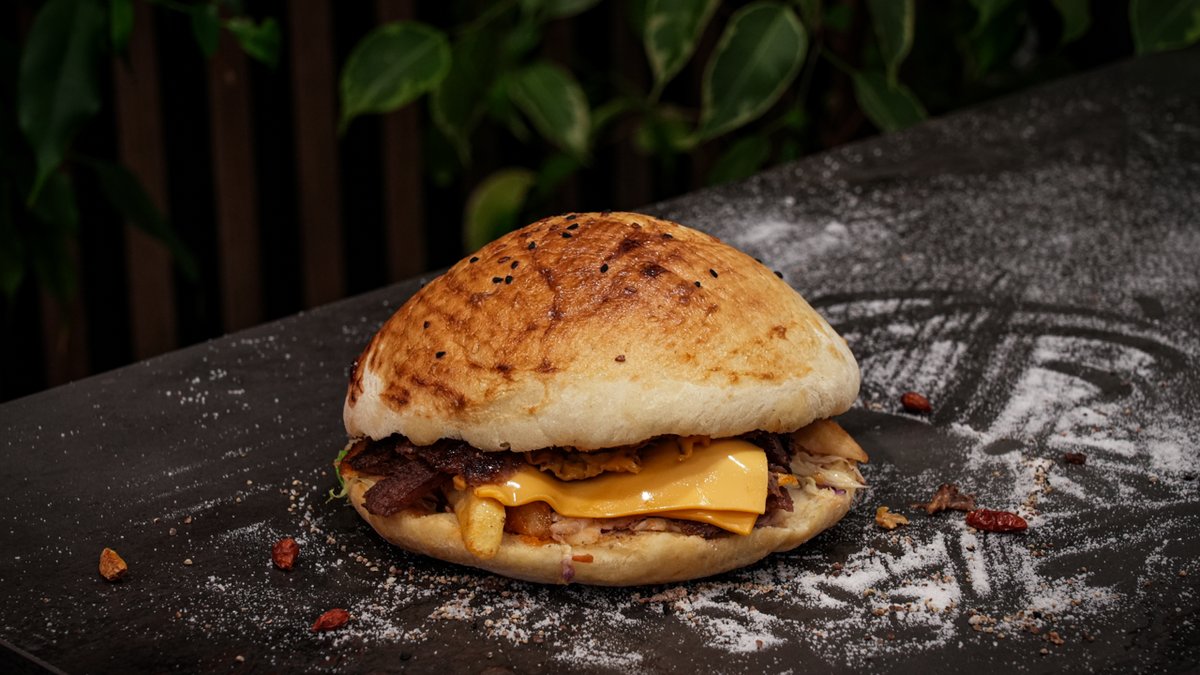 Chifla,carne de pui,cartofi,CHEDDAR,CREMA DE BRANZA,Sos special cald,sos dulce acrisor,castraveti murati,rosii,iceberg