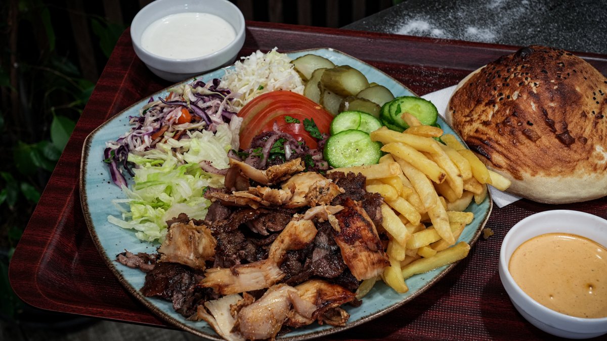 Lipie turcească, carne de pui și de vită cu berbecuț, salată verde, varză, roșii, ceapă, castraveți murați 400 gr