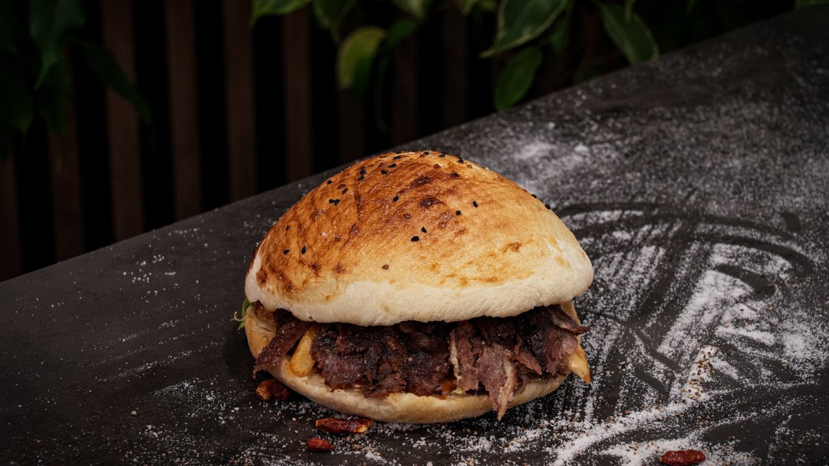 Chifla,carne de pui si vita cu berbecuti,cartofi,CHEDDAR,CREMA DE BRANZA,Sos special cald,sos dulce acrisor,castraveti murati,rosii,iceberg