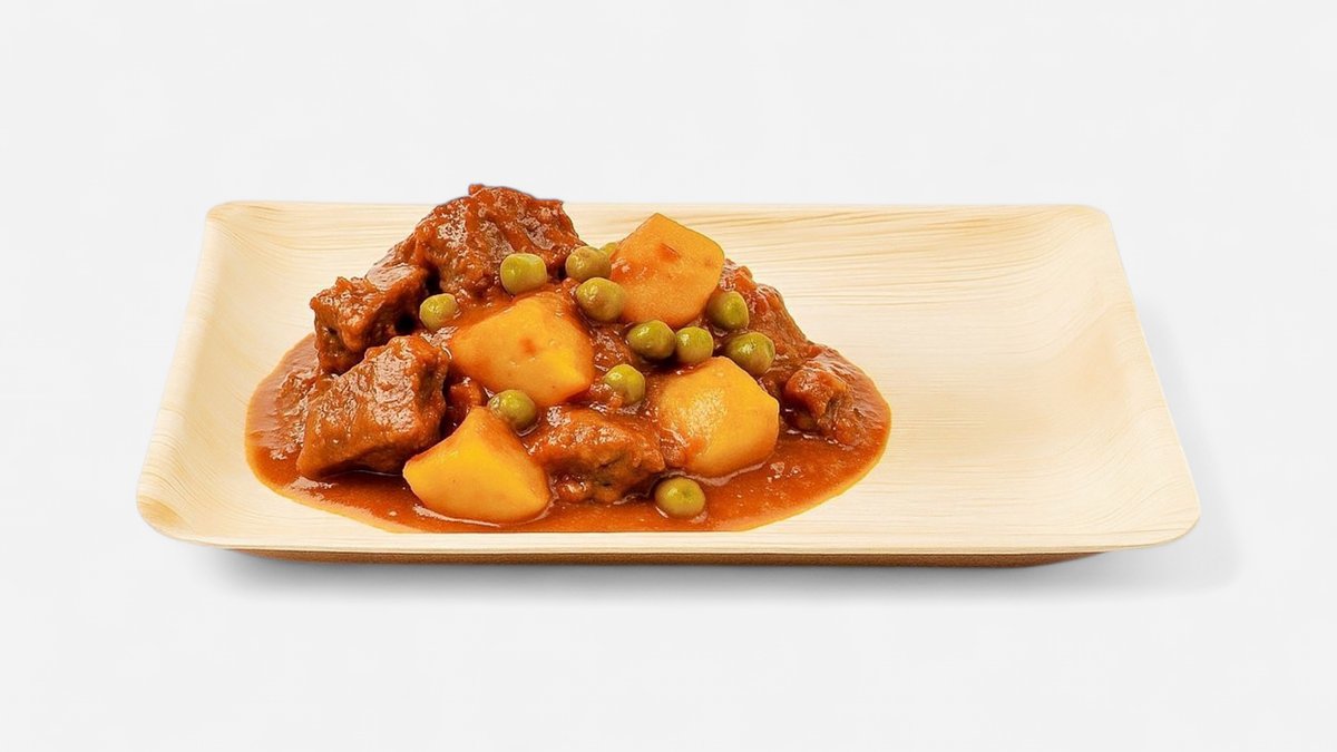 ( Carne de vita, ardei kapia, morcov, pastarnac, usturoi, ceapa, dovlecel, vinete , sos de rosii, cartofi, cimbru, sare, piper ) 350g