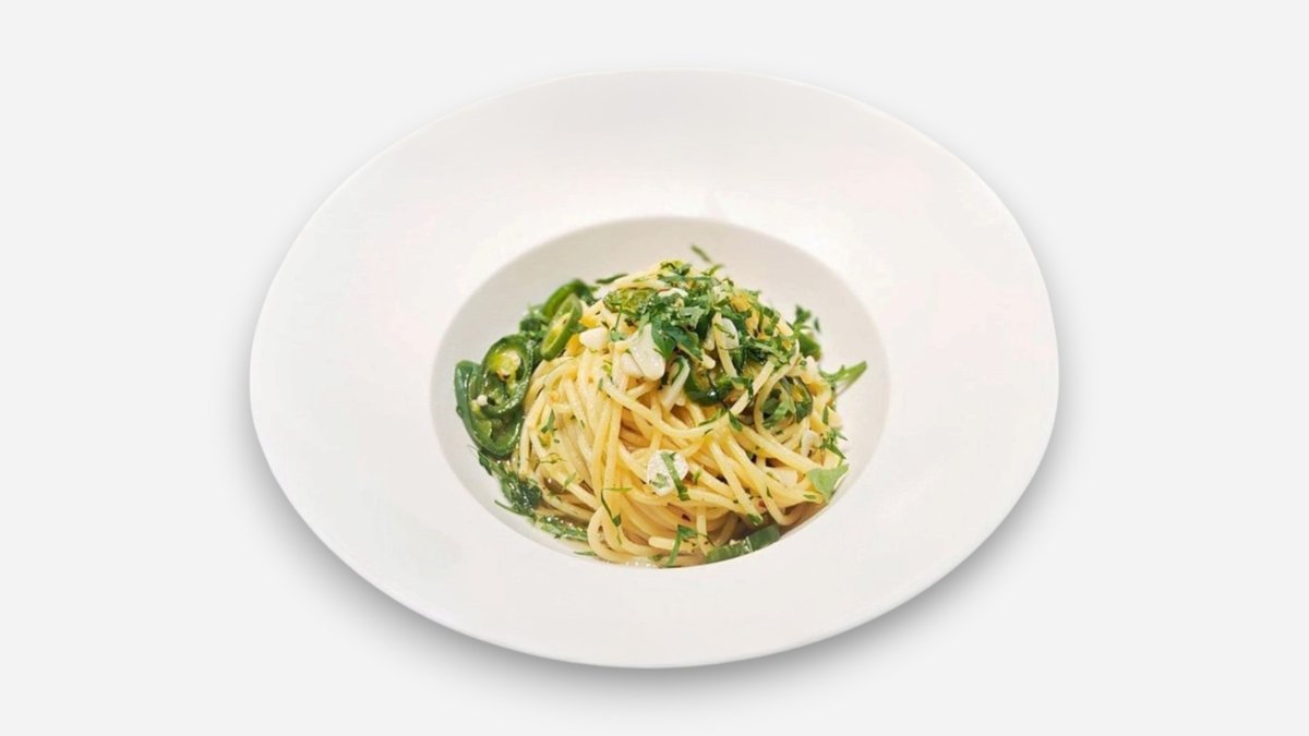 Spaghete, ulei de masline, patrunjel, usturoi, ardei iute, sare - 250g