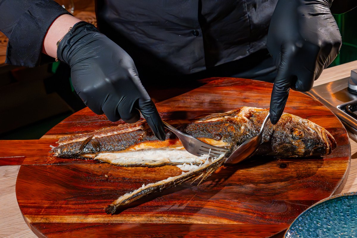 Biban de Marea Neagră la Plită cu Polenta și Cremă de Usturoi