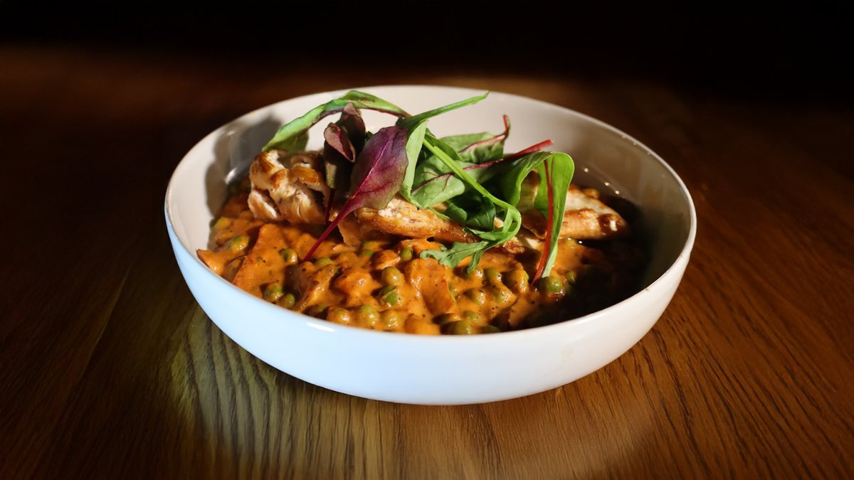 piept de pui, mazare, ceapa, bacon, rosii uscate, sos de rosii, gran cuccina - 400g