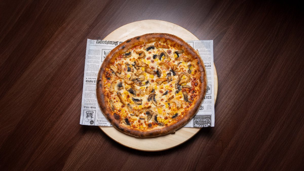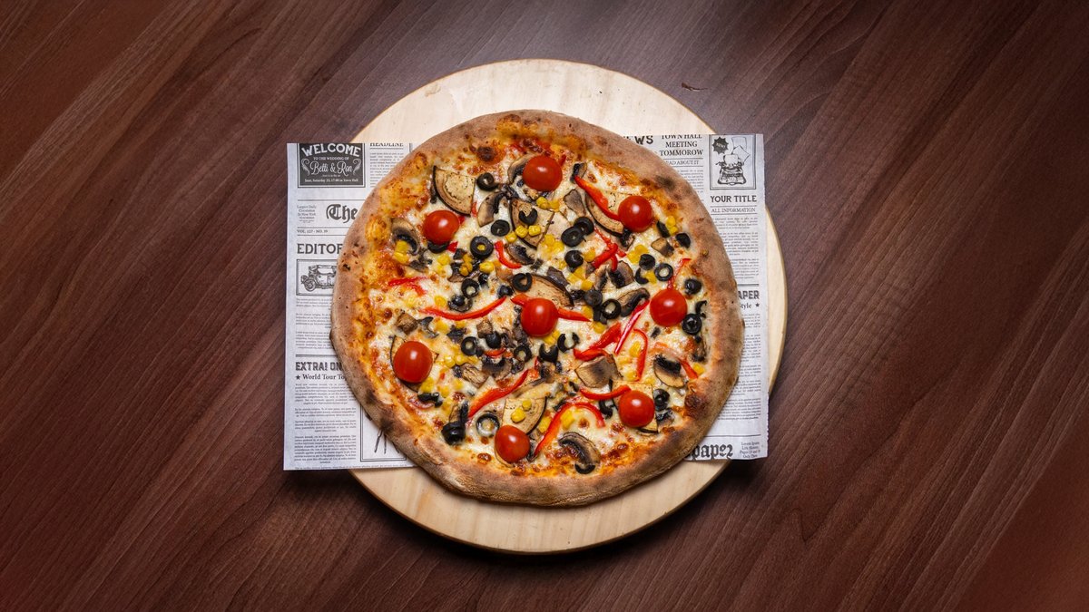 sos de rosii, mozzarella, ciuperci, ardei, rosii, masline, porumb - 630g
