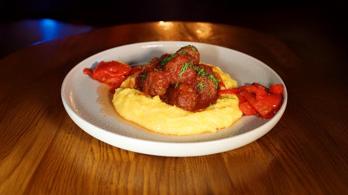 chiftele din carne porc-vita, sos de rosii, mamaliga - 400g