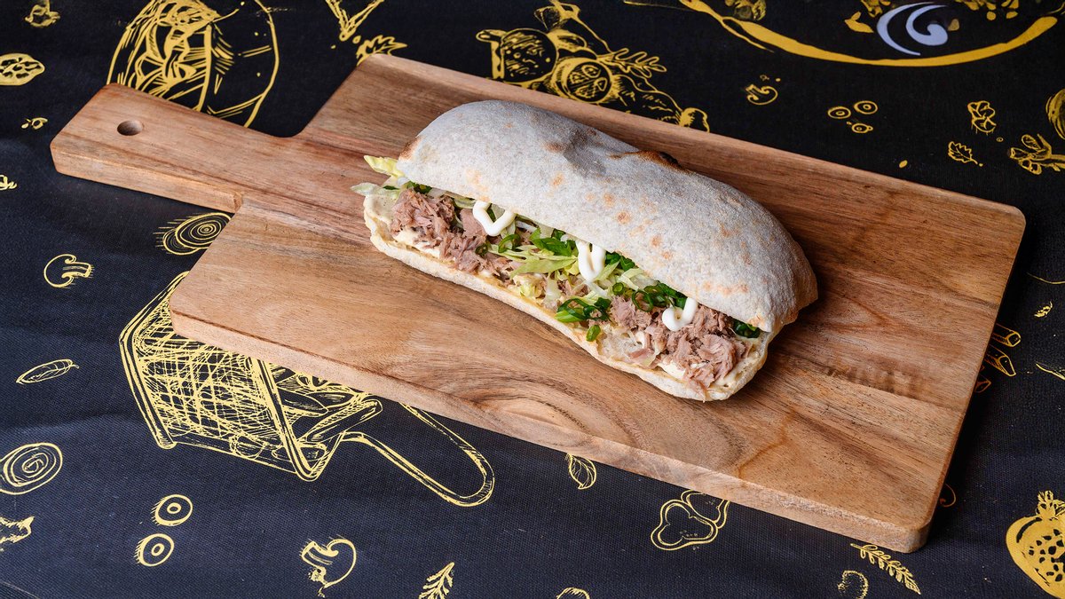 120 gr mix salata verde, 80 gr ton, 50 gr rosii cherry, 30 gr crema ou, 30 gr masline, 30 gr porumb dulce, 10 gr ceapa verde, 130 gr focaccia