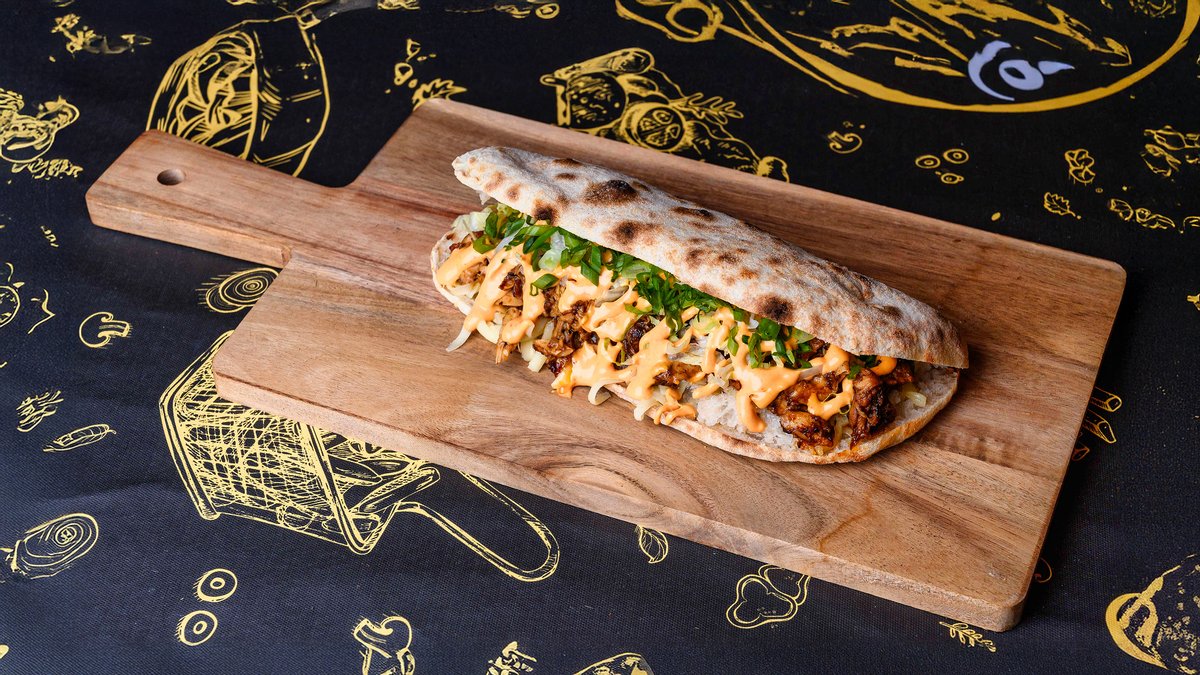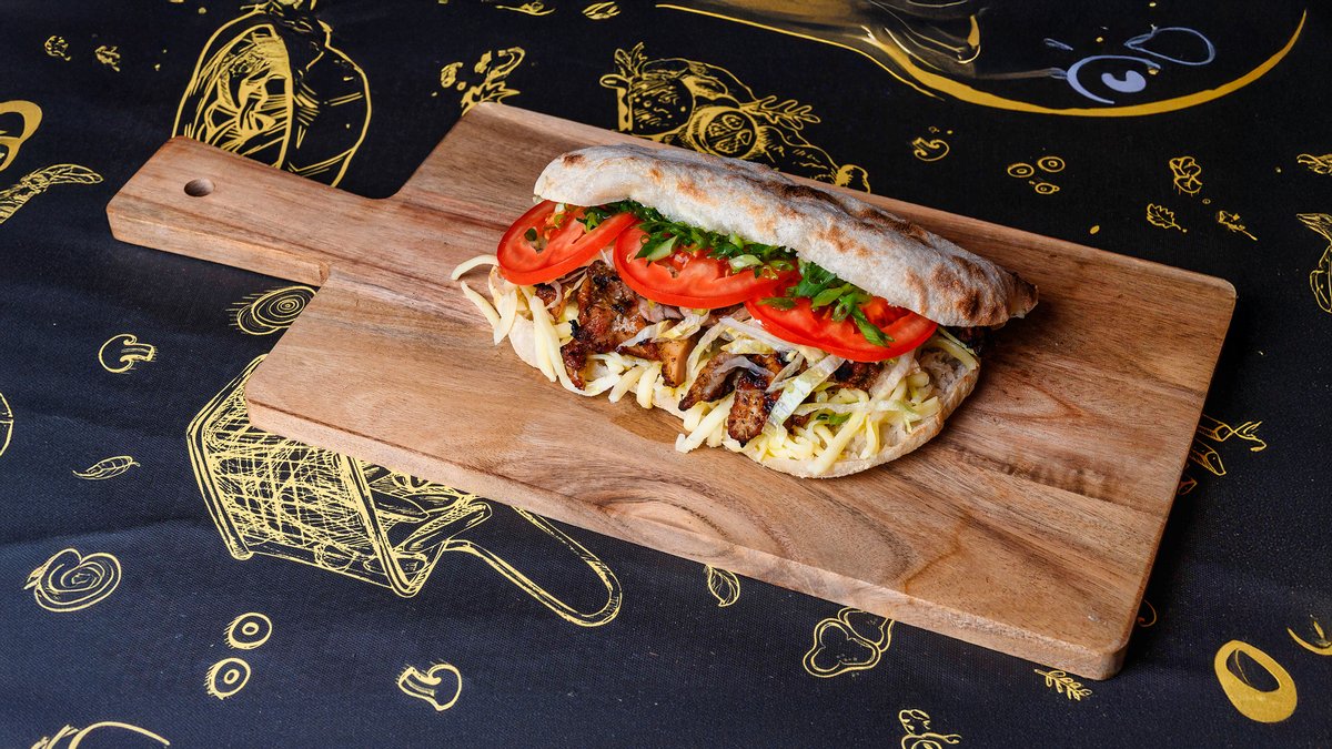 130 gr chifla, 100 gr fleica porc, 70 gr cartofi prajiti, 40 gr salata varza alba, 50 gr sos castraveti murati