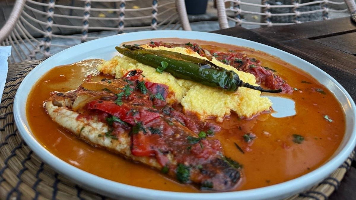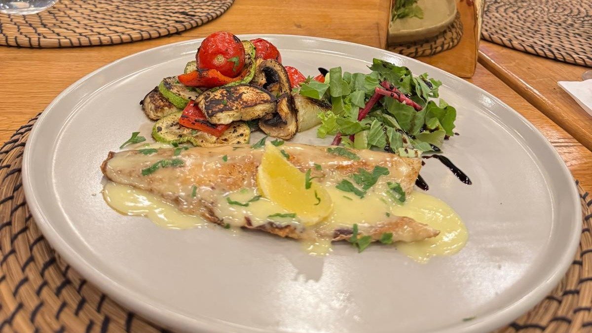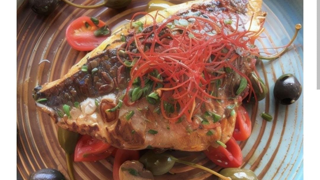 Doradă, capere, măsline, unt, roșii cherry și orez cu legume 400 gr