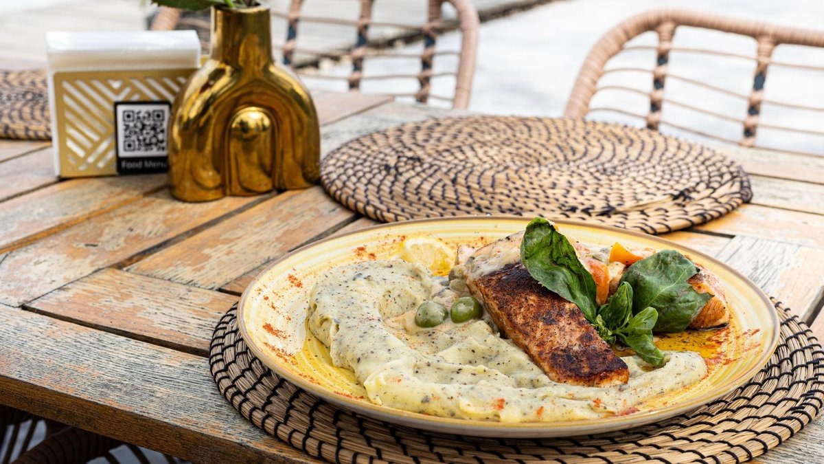 Biban, sos de lămâie, rizzotto, parmezan, praz, cucina, unt, mazăre, sofran, sare, piper 350gr