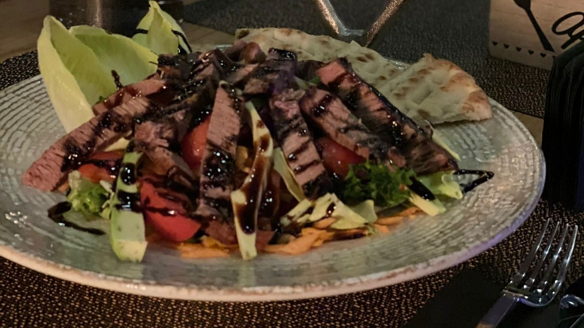 Mix salata verde, muschi de vita, rosii cherry, morcov ras, avocado, lipie