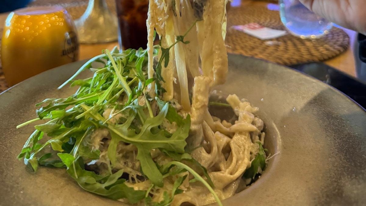 Tagliatelle, vită, usturoi, ciuperci, smântână și coniac 300gr