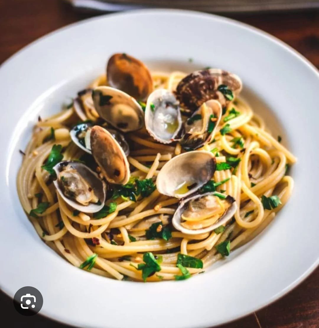 Vongole, scoici negre, rosii cherry, usturoi, busuioc, peperonciono 300gr
