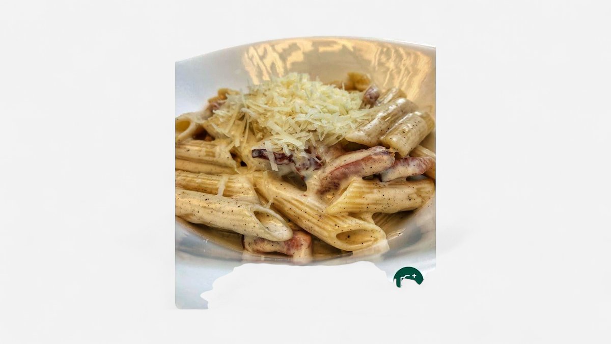 Penne, ciuperci, bacon, piept pui, sos roșii, usturoi, mozzarella și parmezan 220gr