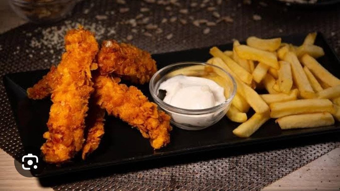 Aripi crispy, crispy, bulete, nuggets, chips, sos calypso și sos sweet chilly