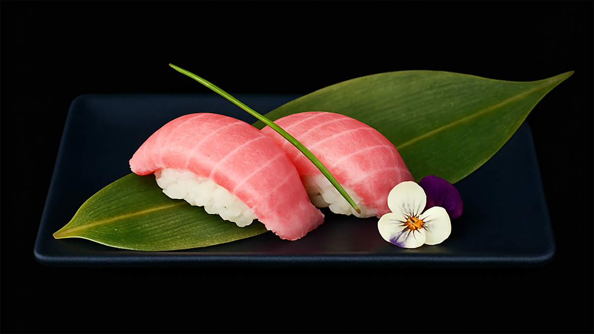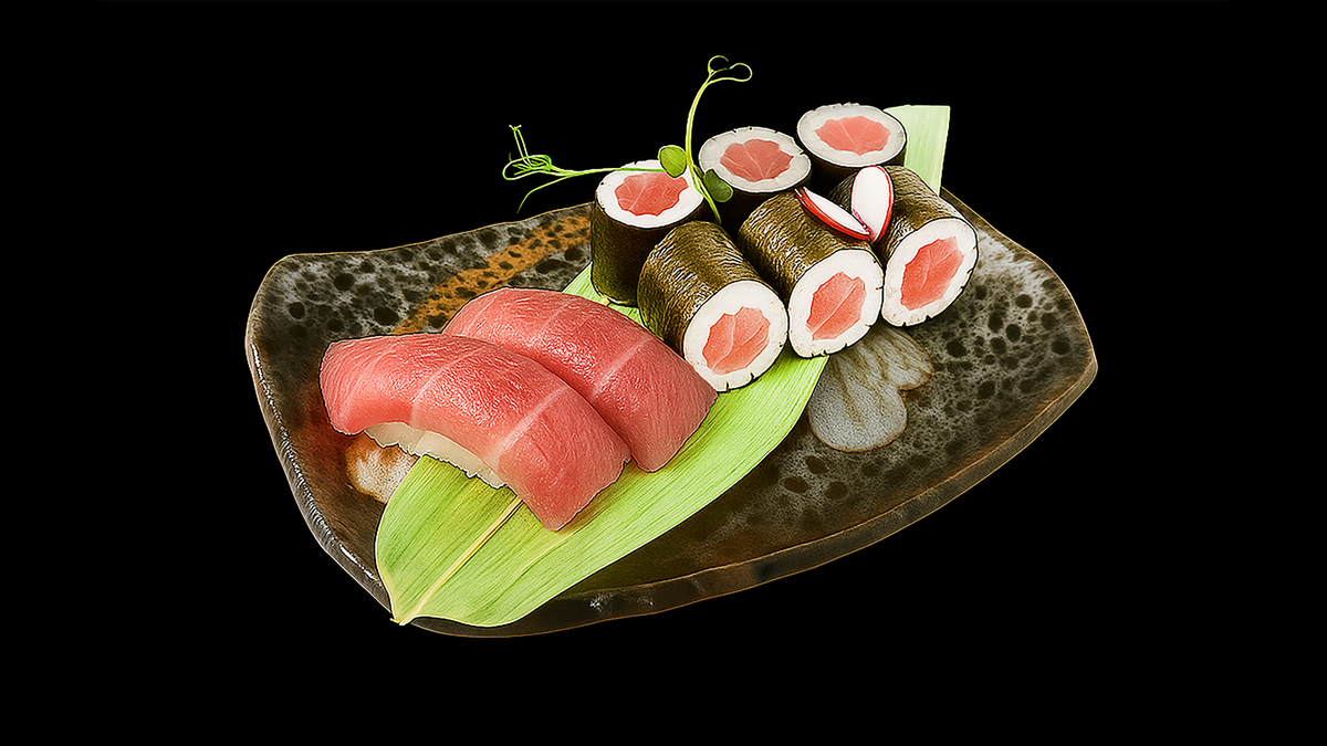 Orez 80g, otoro*50g, ghimbir murat, wasabi, sos de soia*, nori 6 buc Otoro nigiri 2 buc