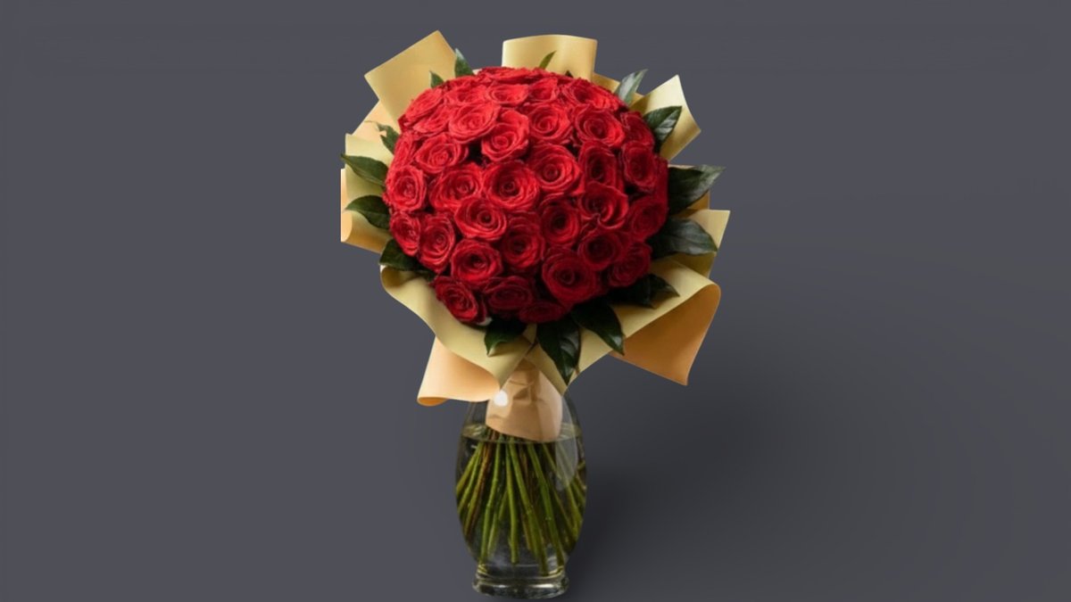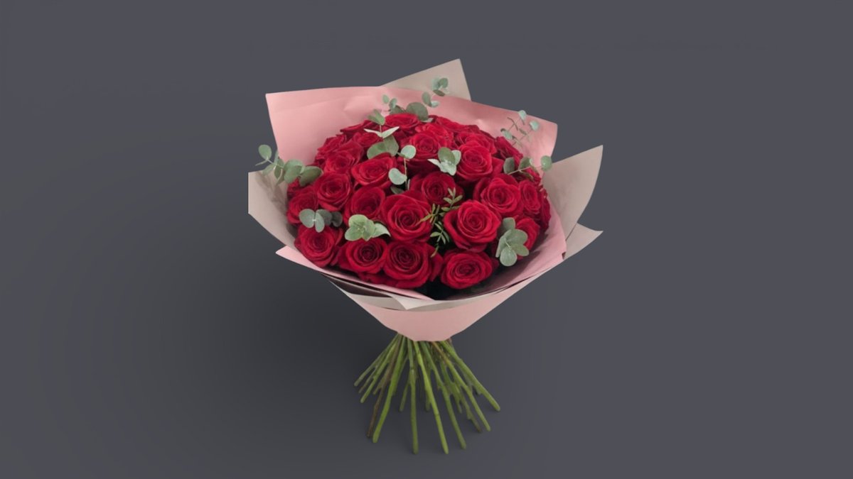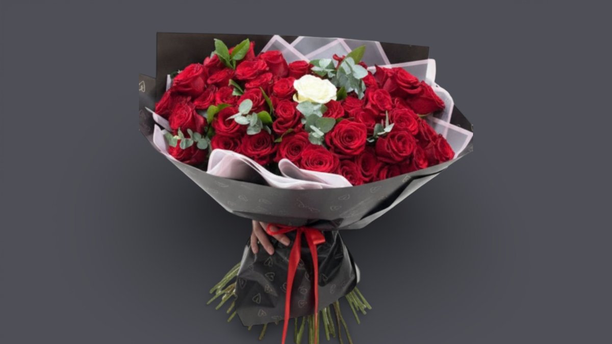 Buchet 51 trandafiri roșii și unul alb cu aranjament