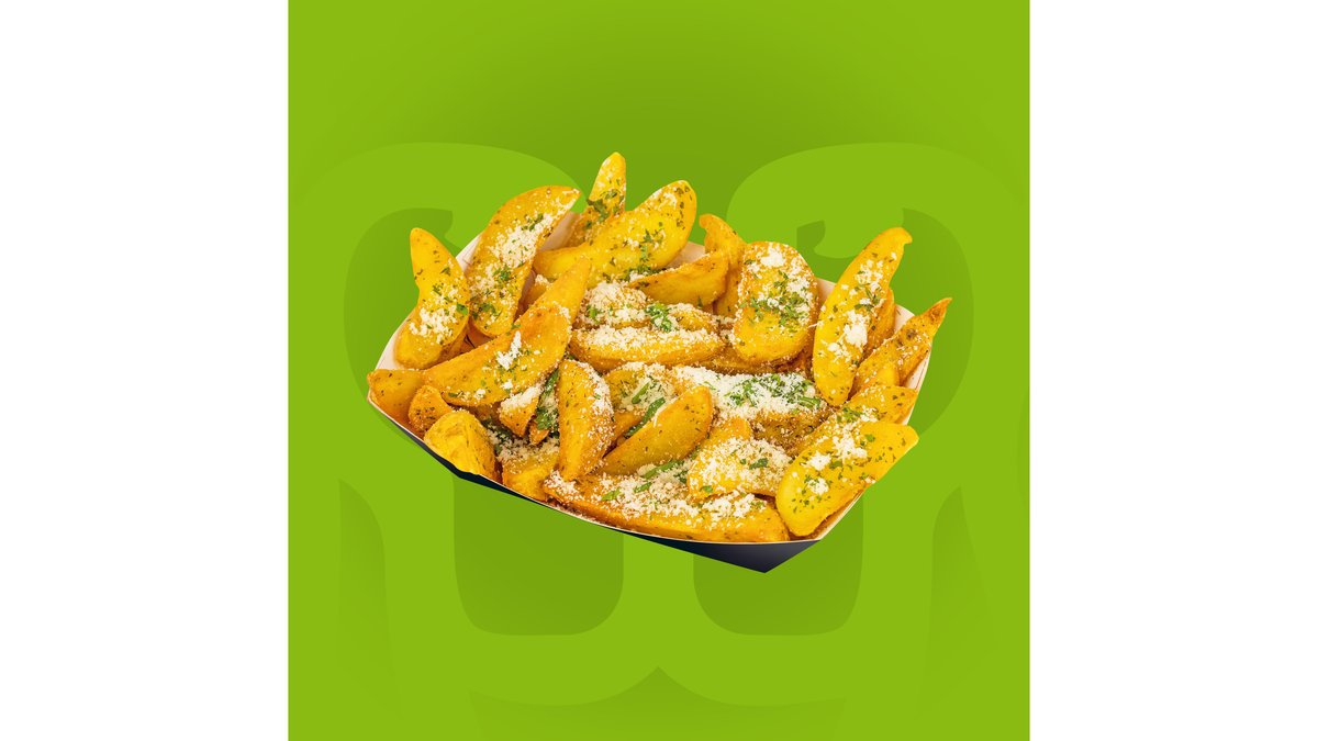 Cartofi wedges cu parmezan, usturoi si patrunjel.