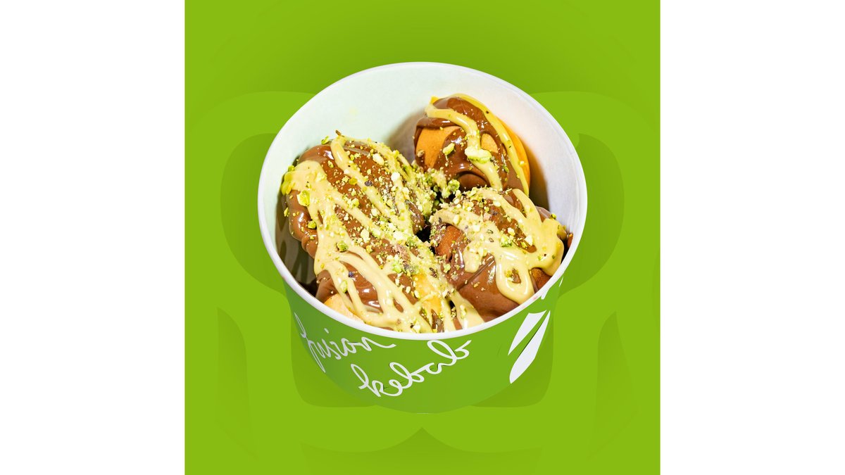 Bubble waffle, crema de fistic, fistic macinat.