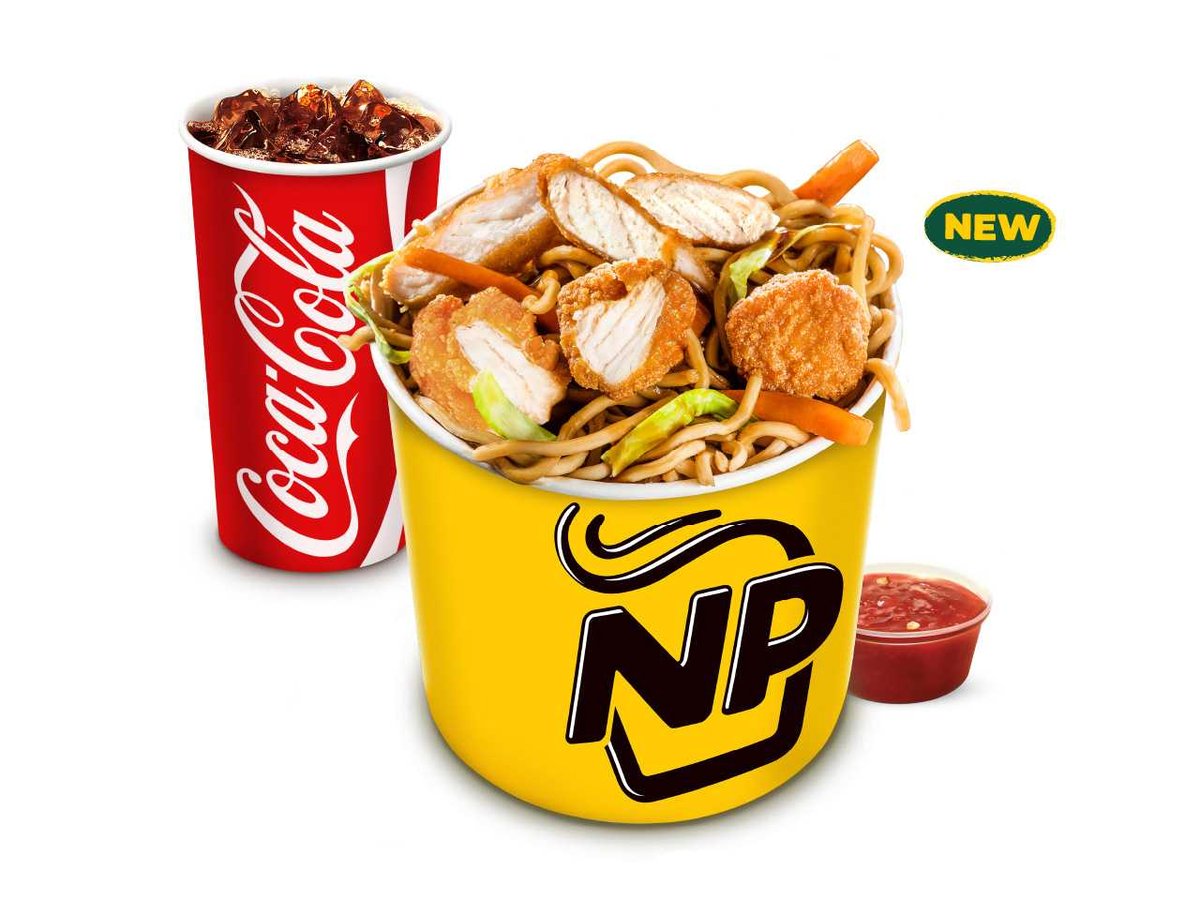 Gramaj total portie: 380 gr. Noodle orez 250g (tăiței de orez, varză, ceapă, morcov - în cantități variabile), nuggets**(piept de pui crocant) 70g, ulei de rapiță, sos de stridii, sare, piper, zahăr, soia light, sos la alegere*50ml. Aditivi: conservant benzoat de sodiu E211, potențiator de aromă inozinat disodic E631, guanilat disodic E627, amidon modificat E1414, regulator de aciditate glucono-delta-lactonă E575, conservant benzoat de sodiu E211. Agent de creștere carbonat de amoniu E503, difosfați de sodiu E450, carbonat acid de sodiu E500, potențiator de aromă monoglutamat de sodiu E621, stabilizatori di și trifosfați de sodiu E450, E451, corectori de aciditate acetat de sodiu E262, carbonat de sodiu E500, agent de îngroșare gumă xantan E415. Valoare energetica (kJ/ kcal)2297.72 / 549.17 Grasimi (gr)20.72 din care acizi grasi saturati (gr)6.10 Glucide (gr) 52.74 din care zaharuri (gr) 1.23 Proteine10.56 Sare4.09 gluten, ou, soia, țelină, muștar, lapte, semințe de susan, sos de stridii.