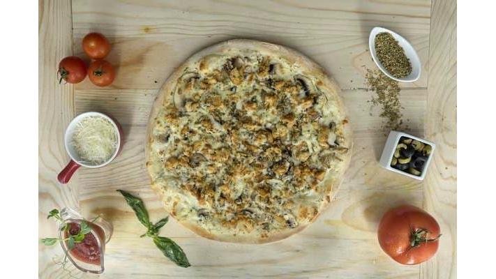 Sos alb, mozzarella, ciuperci, pui, cașcaval, gorgonzola, oregano, condimente- 620 g