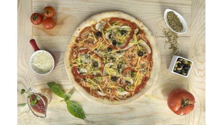 Sos, mozzarella, ciuperci, porumb, măsline, ardei gras, roșii, broccoli, condimente- 2200 g