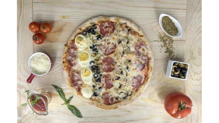 Sos, mozzarella, șuncă, ciuperci, salam, măsline, ou, bacon, condimente- 2200 g
