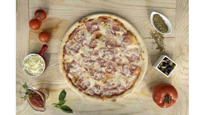 Sos, mozzarella, șuncă, ciuperci, salam, măsline, ou, bacon, condimente- 975 g