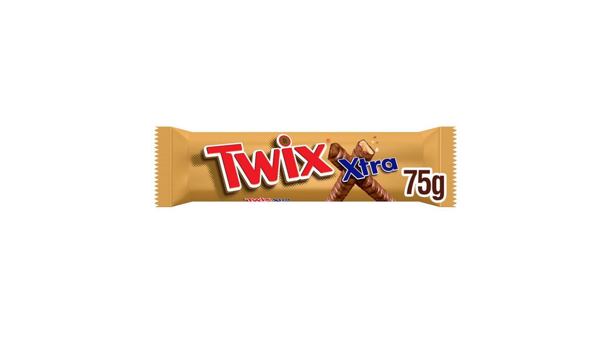 Baton cu biscuite si caramel invelit in ciocolata cu lapte Twix Xtra, 2 x 37.5 g