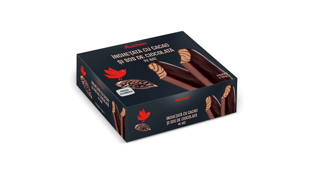 Pachet inghetata pe bat cu cacao, sos de ciocolata si glazura de cacao Auchan, 6 x 55 g