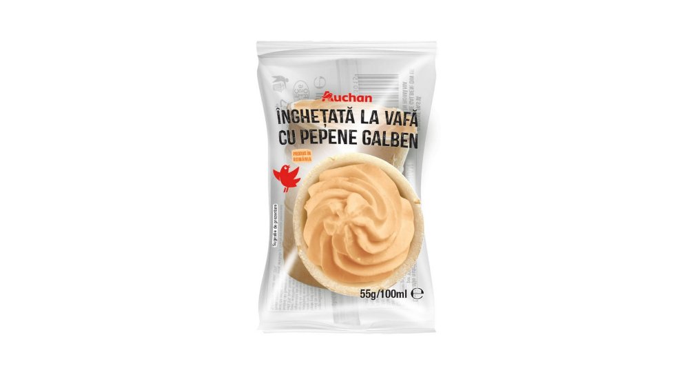 Pachet de inghetata la cornet cu capsuni, arahide si glazura de cacao Auchan, 6 x 65 g