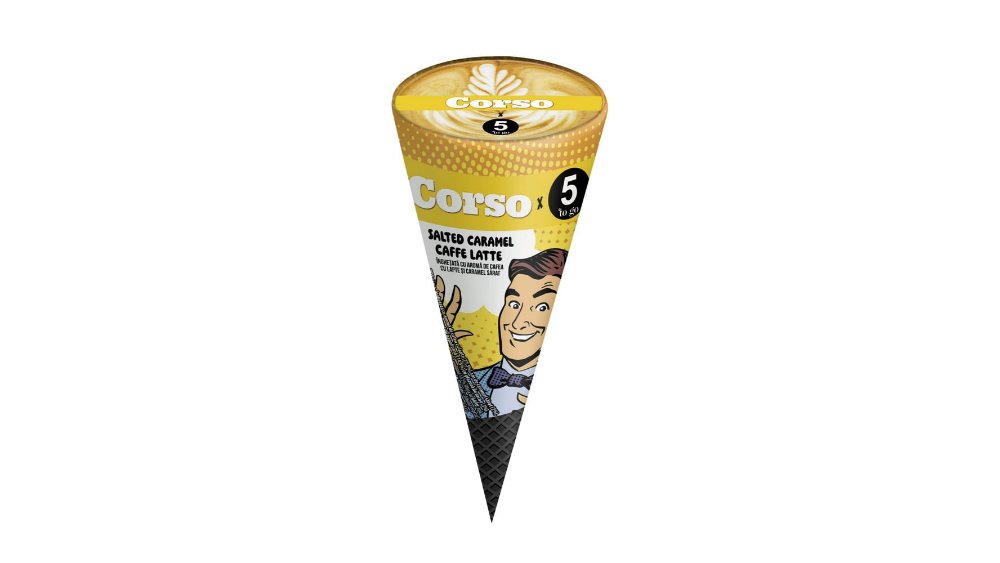 Inghetata la cornet Corso x 5 To Go, aroma de cafea cu lapte si caramel sarat, 110 ml