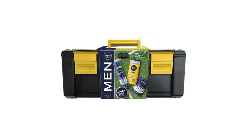 Set pentru cadou Nivea Men Toolbox The Classic: gel de ras 200ml, balsam aftershave 100ml, gel de dus 250ml si crema fata 75ml