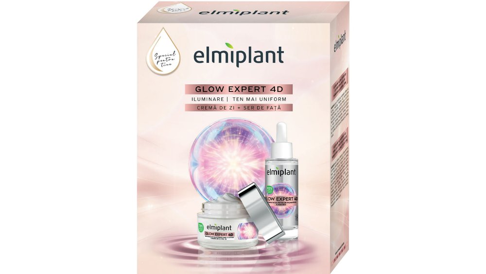 Set pentru cadou Elmiplant Glow Expert 4D: crema de zi, 50 ml + serum pentru fata, 30 ml