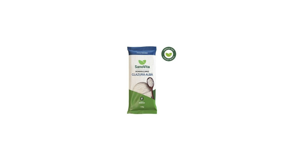 Rondele din orez expandat cu glazura alba Sano Vita, 66 g