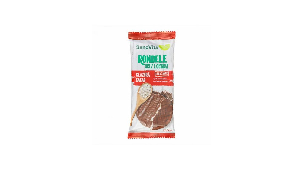 Rondele din orez expandat cu glazura de cacao Sano Vita, 66 g